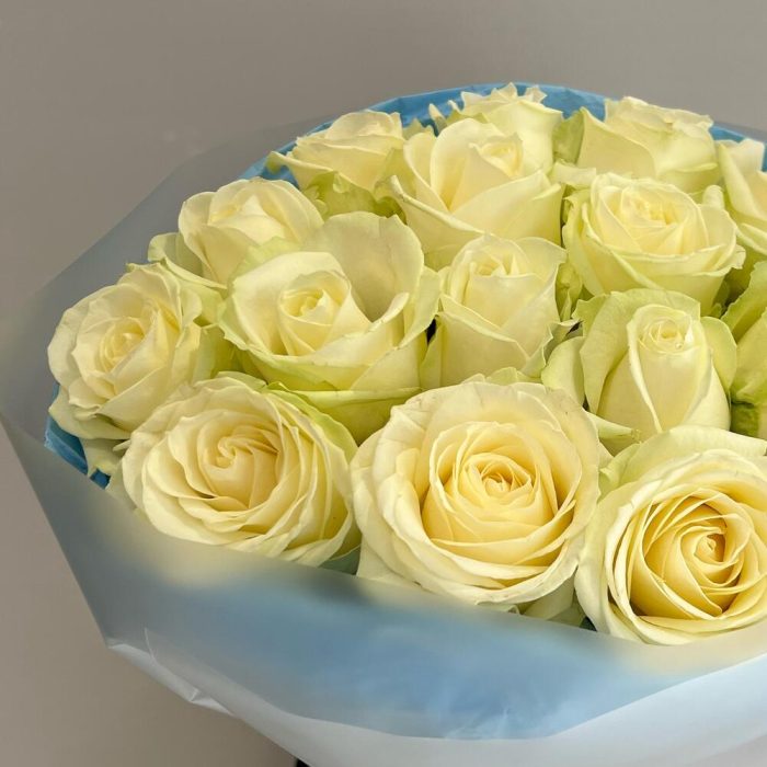 Букет из 15 белых роз в упаковке