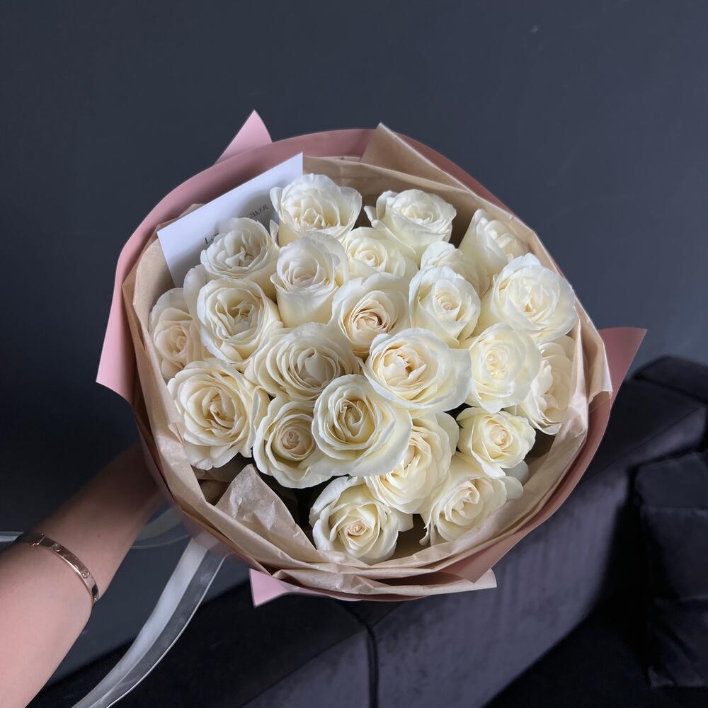 Роза 70 см – 23 шт.Пленка матовая – 1 шт.тишью кремовая хрустящая – 1 шт.