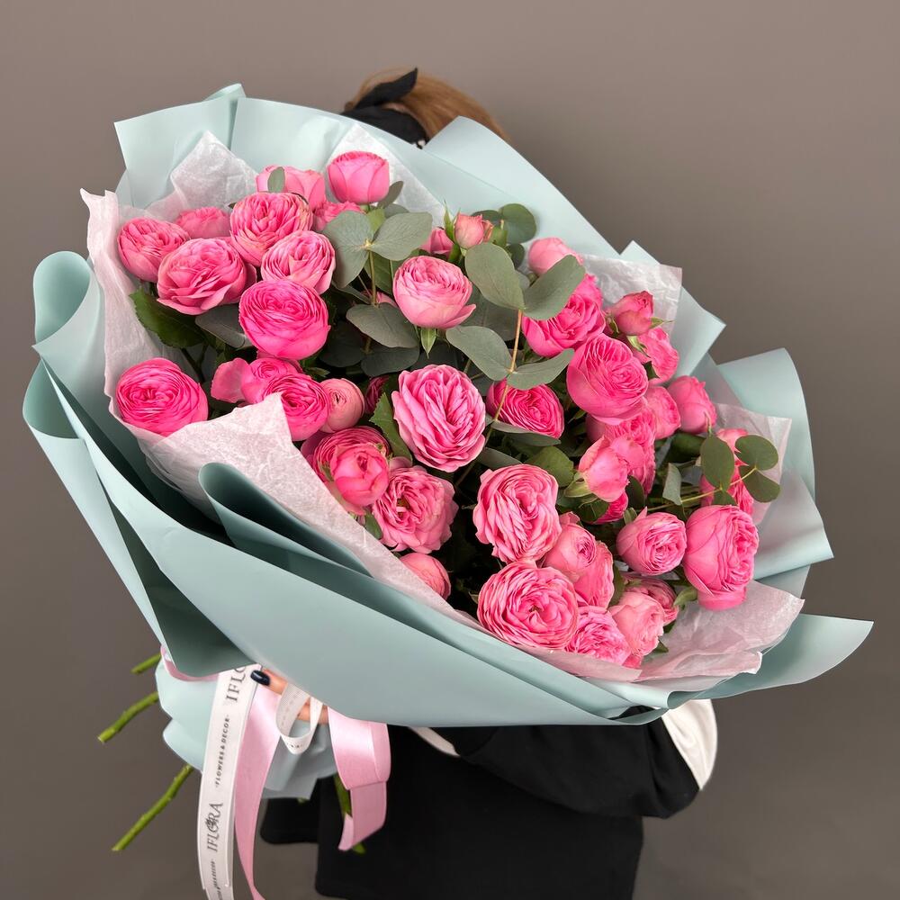 Эвкалипт – 4 шт.Дизайнерская упаковка – 2 шт.роза жизель – 9 шт.