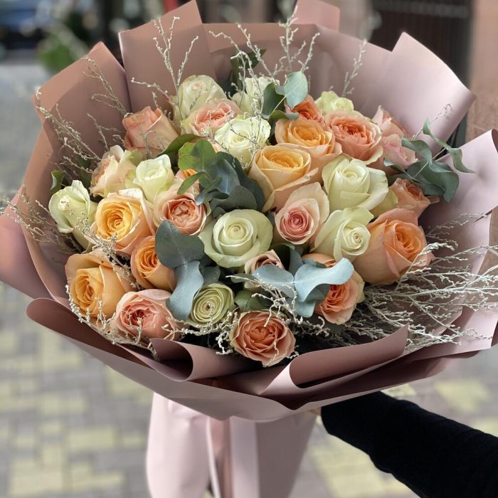 Гвоздики, Кустовые розы, Лизиантусы, Пионовидные розы, Розы