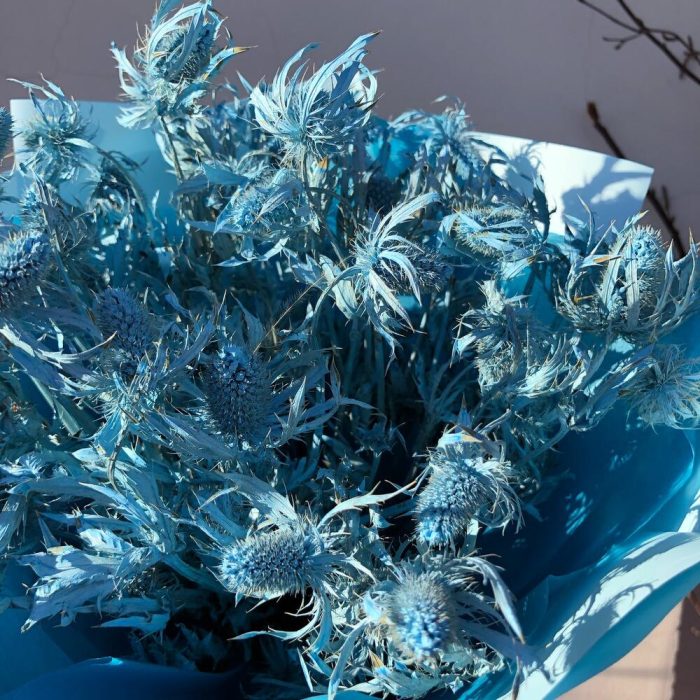 Упаковка – 2 шт.Лента атласная – 1 шт.эрингиум сухоцвет крашеный – 9 шт.